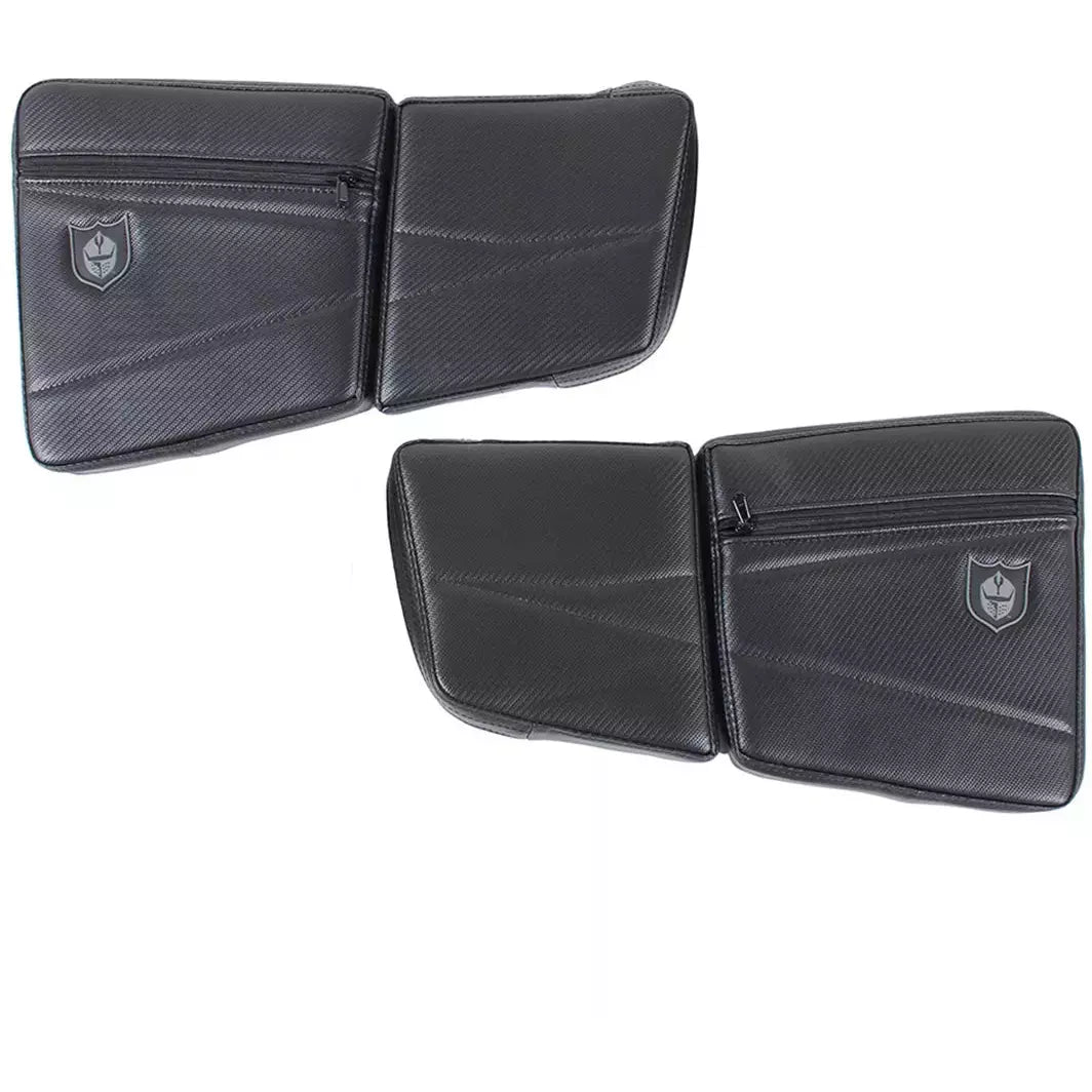 The Pro Armor Stock Door bag with Knee Pads are designed to protect your knees from hitting the door and give you additional storage while out on your ride. These door bags are simple to install on your stock door and also work with our Pro Armor Stealth Doors as well. These use the existing hardware that is currently on your door and will take just minutes to install. They are designed to fit on a two seater or the front door of a four seater.