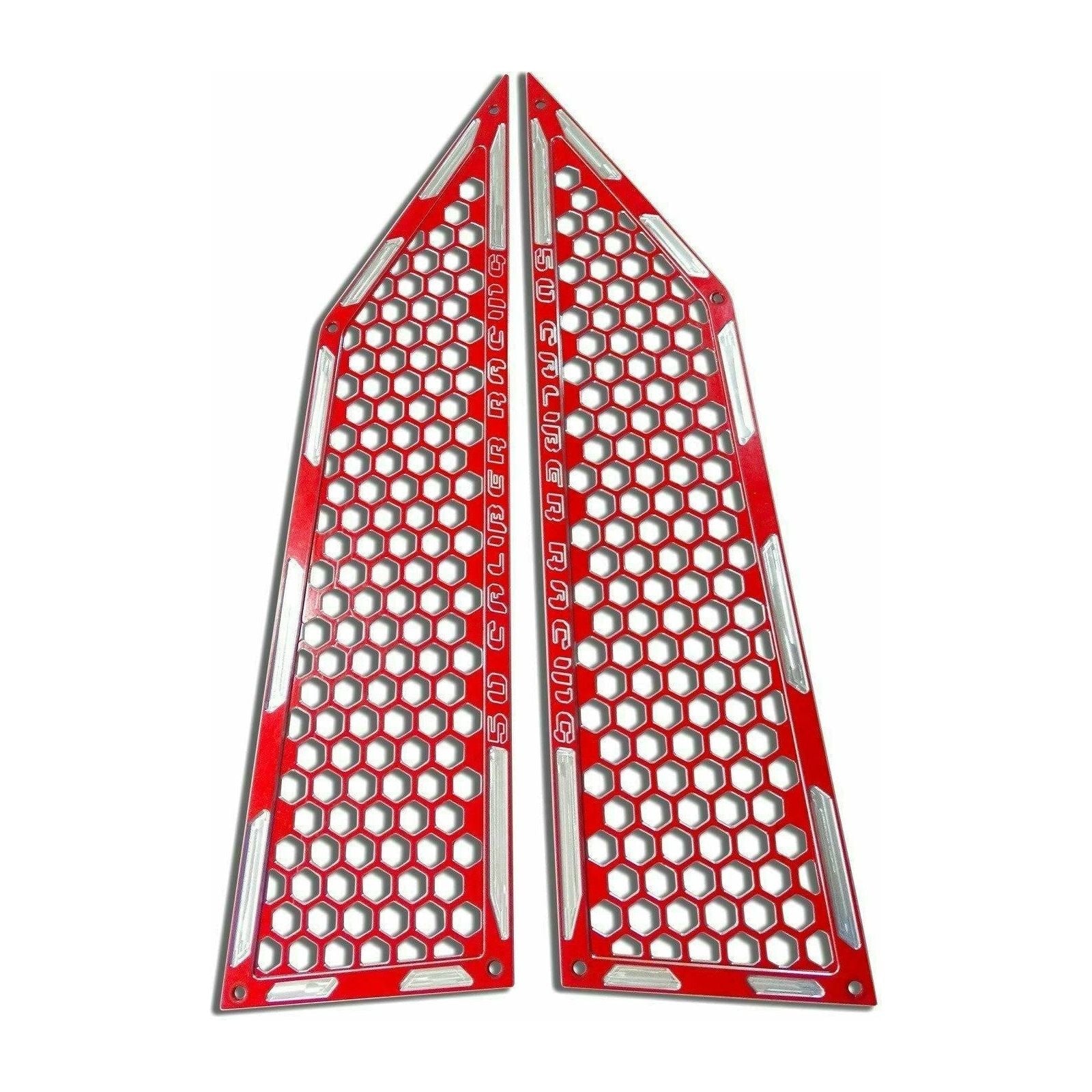CNC machined from 6061 billet aluminum. Includes a right and left side cover for the intake and the clutch vents on your XP Turbo. Provides a custom, stylish and aggressive look with a honeycomb design and 50 Caliber Racing logo engraved on both pieces. Finished with a durable powdercoat and relief machined for a two toned bling effect. Stainless steel hardware included for a quick and easy installation. Proudly made in the USA!