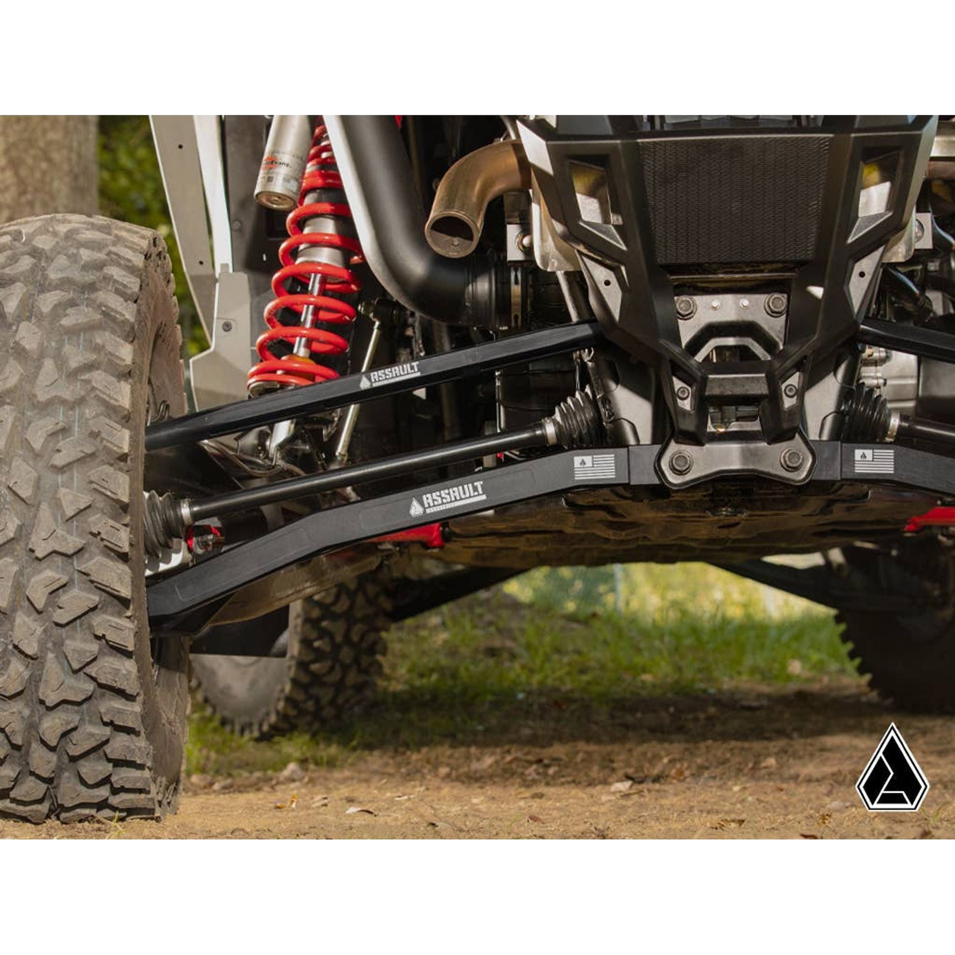 If taking your RZR Turbo R out for a joyride then you better make sure you have everything you need to stabilize your suspension. Install Assault Industries' Polaris RZR Turbo R High-Clearance Billet Aluminum Radius Arms. They help to keep your tires and wheels tilted at the same degree no matter how hard you drive or turn. And we’ve cleverly designed them, giving them a unique bend so you have extra clearance to roll over logs and rocks you used to avoid.