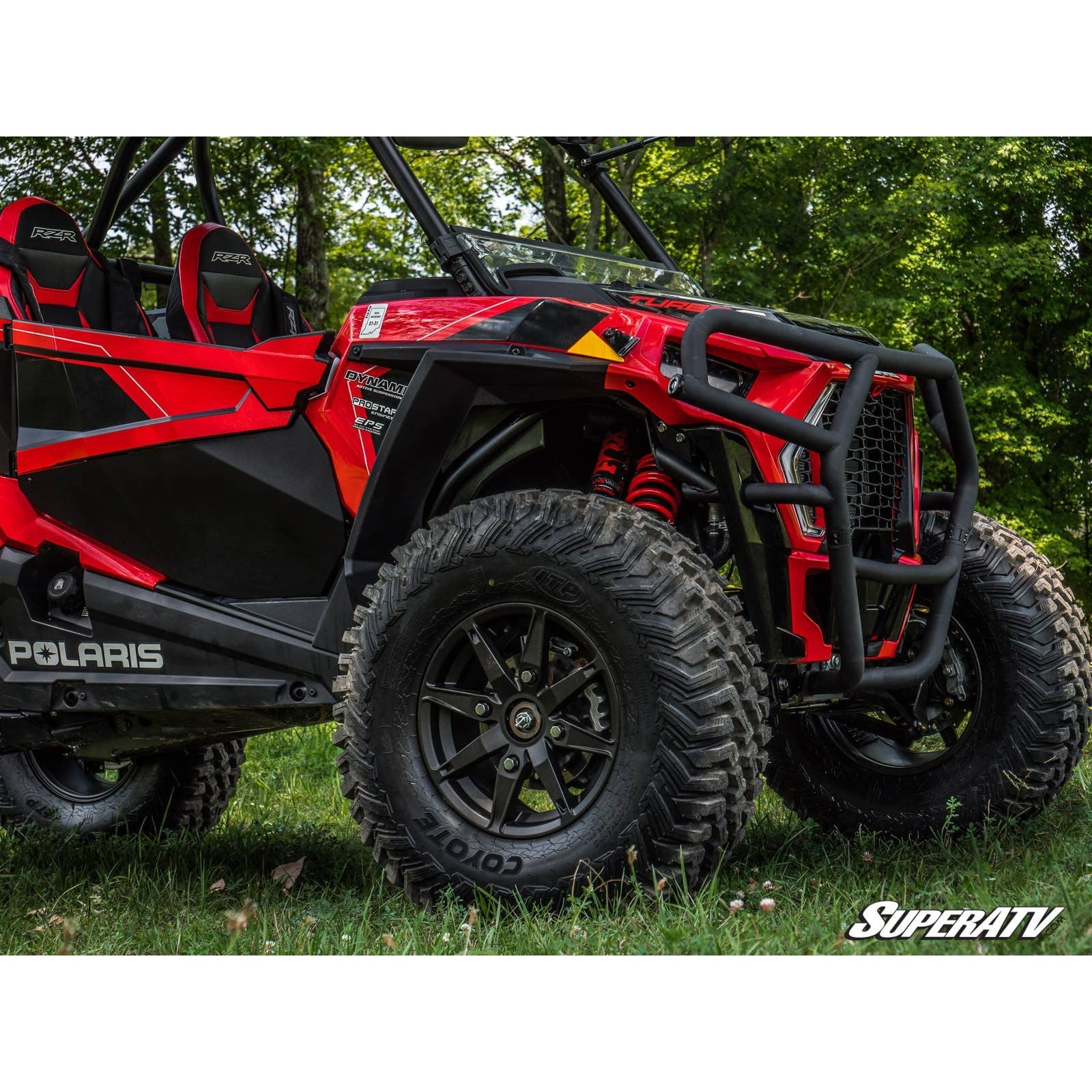 Superior Strength If you’re ready to face the trail head-on, you need SuperATV’s Front Bumper for the Polaris RZR XP Turbo S. This front bumper is made with 1.75” x 1/16” wall steel DOM tubing for superior strength. It provides maximum coverage with tubing around the headlights, grill, and body plastic to ensure your entire front end is protected. It’s rugged, tough, and over-the-top — just the way you like it.