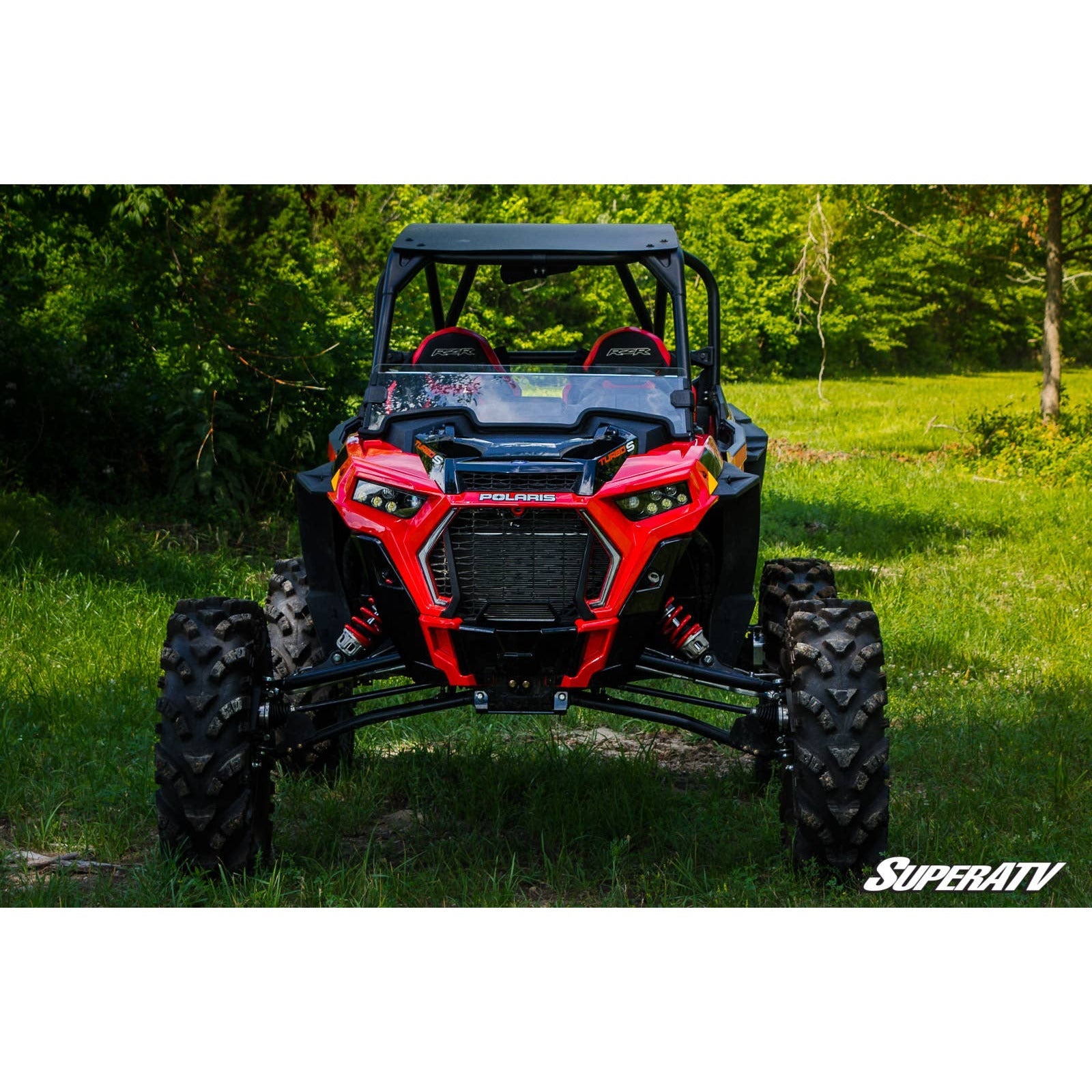 The wind in your hair, the trail zooming below you, the… bugs in your teeth? No thank you. There are some aspects of off-roading that you could do without, which is why you need SuperATV’s Half Windshield for your Polaris RZR Turbo S. It greatly improves your cab comfort by cutting back on airflow. It’s sleek, strong, and easy to install—in other words, it’s exactly what your RZR needs.