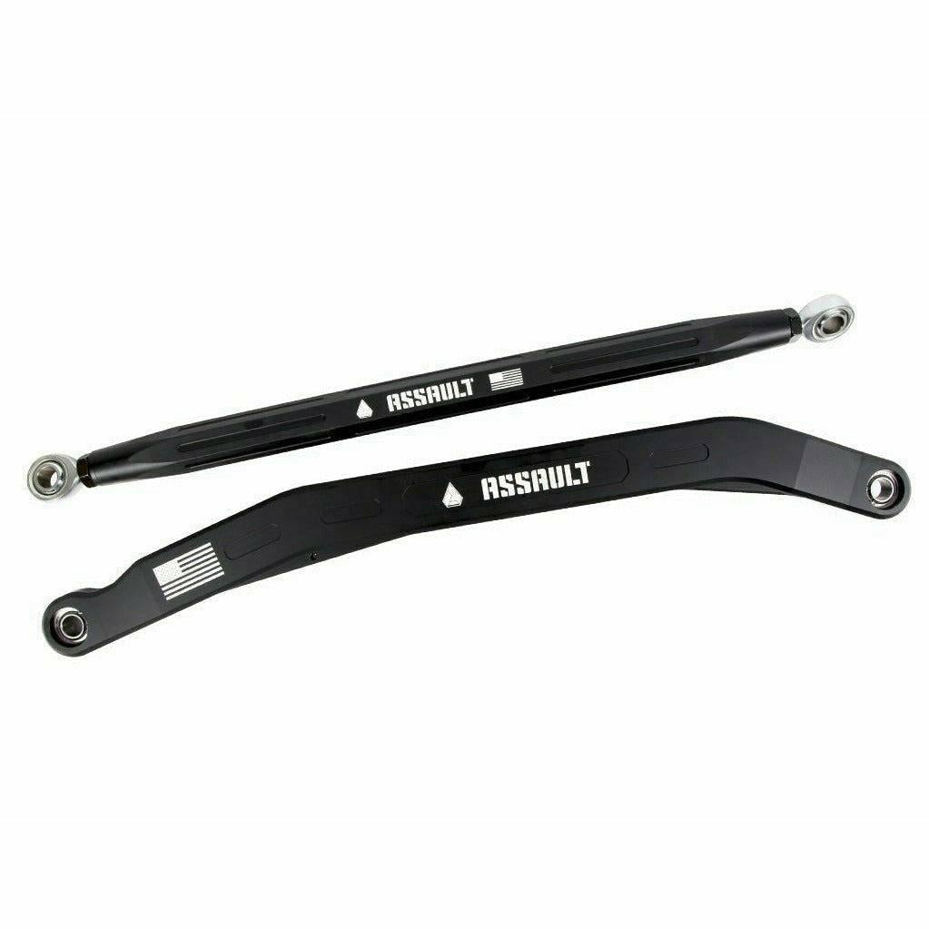 This kit provides additional clearance for your UTV's undercarriage on uneven terrain. Assault Industries high clearance radius rods are machined from 6061 T6 aluminum, hard anodized black and finished with Assault Industries laser markings. The rods feature adjustable uppers with big beefy lower rods.