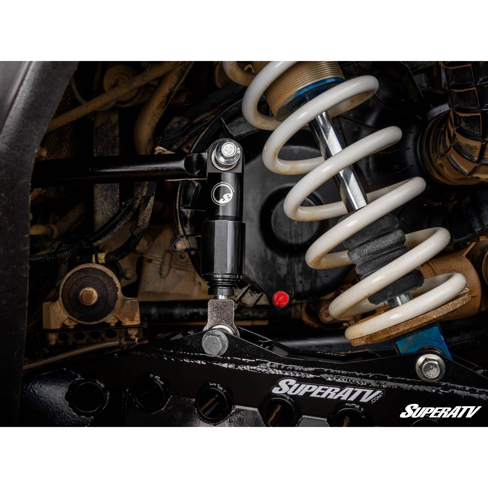 There are two types of riders in the world: those that ride with sway bar links for reliable high-speed cornering, and those that ride without for surer footing on uneven terrain. You can get the best of both worlds on your Polaris RZR XP Turbo S with a SuperATV Sway Bar Shock. It actuates to keep your wheels touching the ground on rocks and ruts while still giving you the rigid support you need to stop body roll on tight turns.