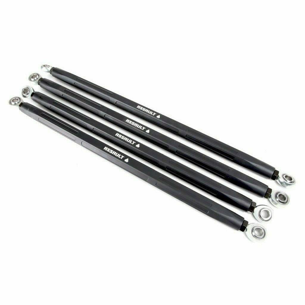 This kit retains OEM clearance but adds 3x the strength and rigidity over the factory setup. Assault Industries radius rods are machined from 6061 T6 aluminum and hard anodized black with polished chromoly adjustable Heim joints.