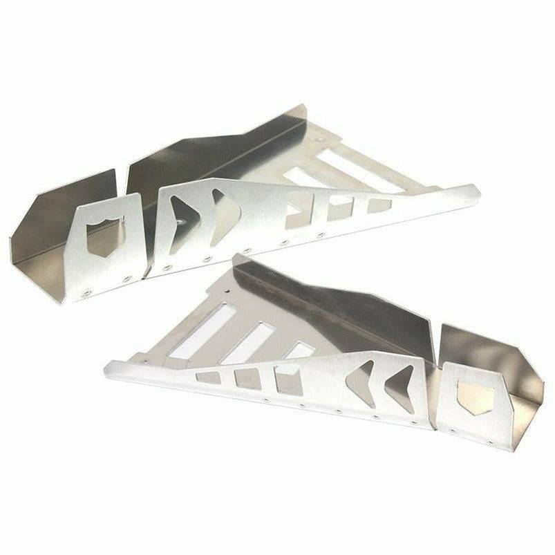 Pro Armor A-arm guards have been designed to shield your RZR XP & XP4 1000 and XP Turbo models, two and four seater from rocks branches or anything else that you might encounter out on the trail or track. Featuring recessed areas for the included hardened bolts our A-Arm guards help to eliminate A-Arm damage while adding a more aggressive look to your RZR. Our guards are made from strong .080 thick aircraft aluminum alloy and are a necessity that any serious enthusiast needs. Let Pro Armor protect your RZR UTV while you enjoy the adventure. Front A-Arm armor comes in brush aluminum finish and sold as a pair.