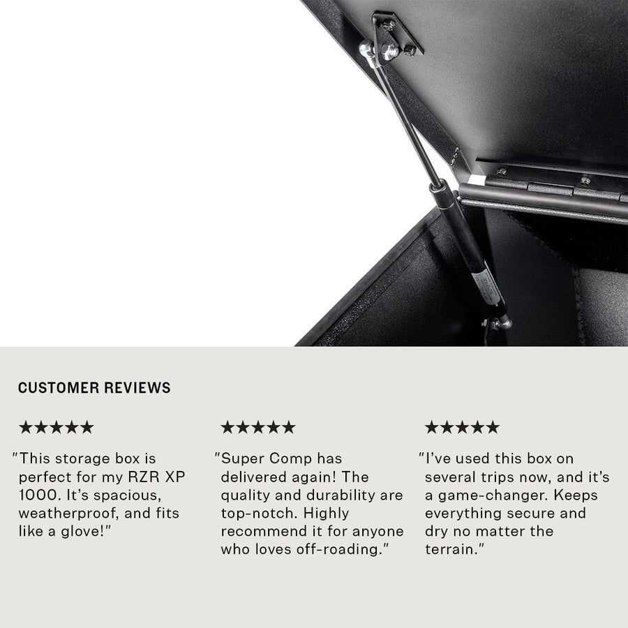 ⭐ ⭐ ⭐ ⭐ ⭐ "This storage box is perfect for my RZR XP 1000. It’s spacious, weatherproof, and fits like a glove!"