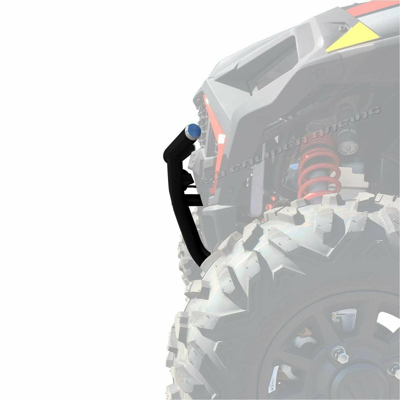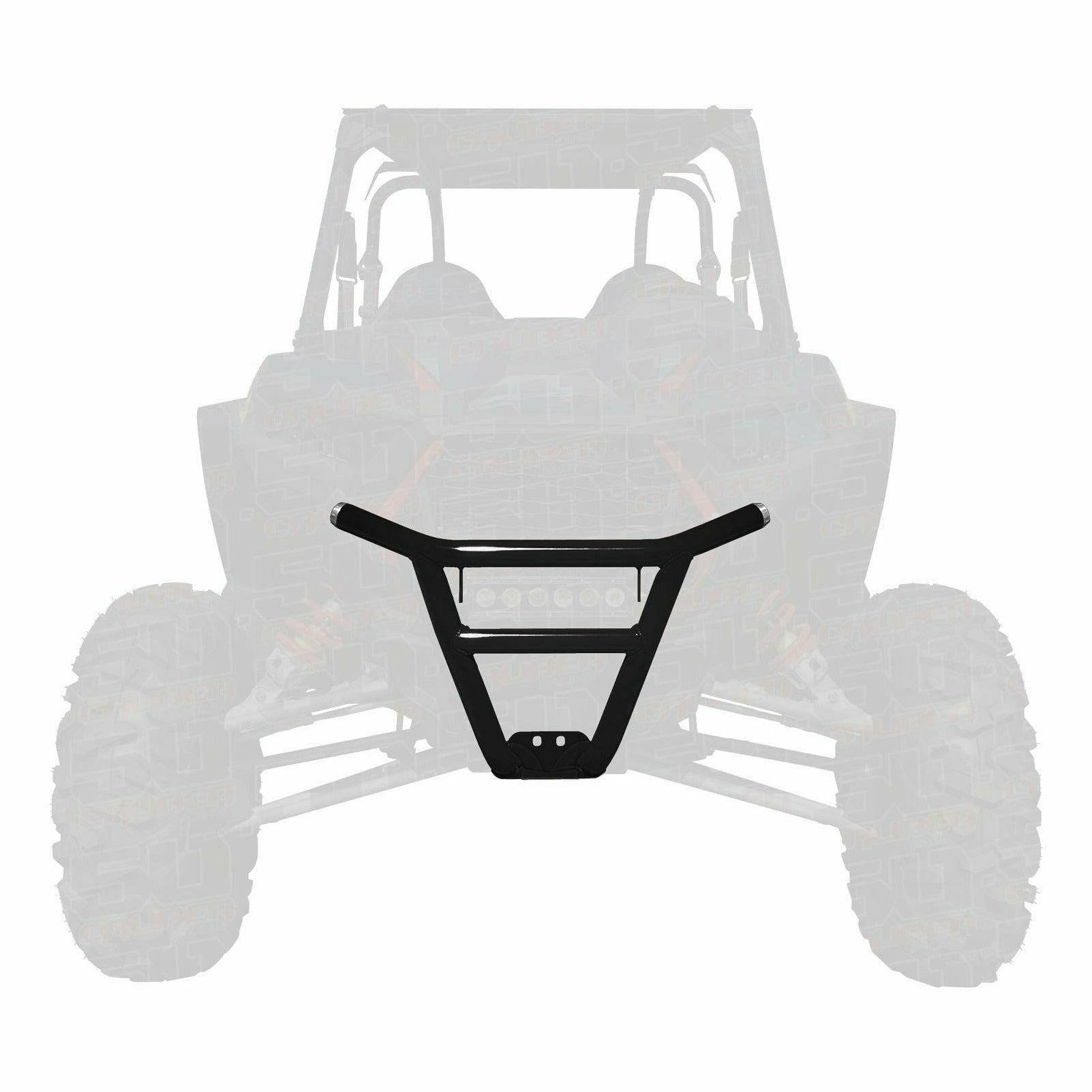 When you take your RZR off road, anything can happen. Add some protection with our heavy duty steel bumper. Constructed from .095 wall steel tubing, this bumper is strong yet lightweight. Hand welded joints for strength and powdercoated for a durable, long lasting finish. Bolt on design, with tabs for a 50 Caliber Racing 11 inch Elite light bar (sold separately part #5045-c). We designed these bumpers for our factory sponsored racers cars and run them in every race. They are stout and built to handle abuse. Includes our premium CNC machined end caps.