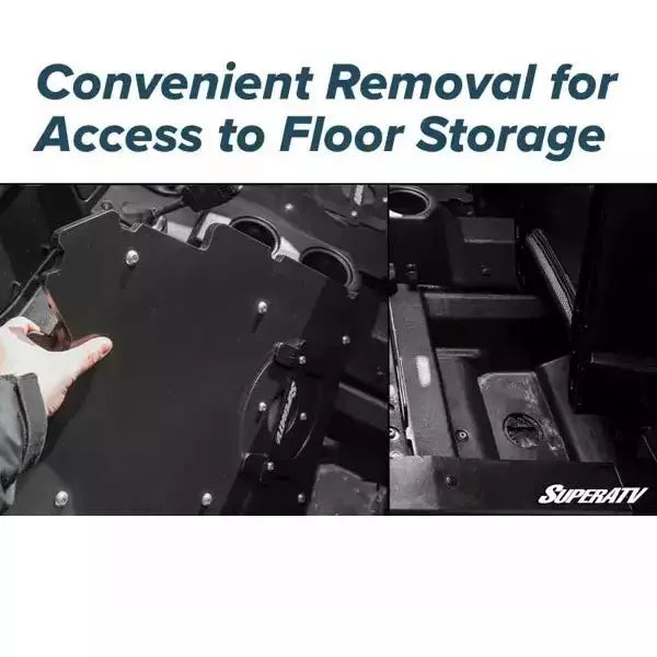 Since each kit comes with two 1/2” UHMW panels, you can replace one or both seats. The panels easily bolt to your seat base for a rigid fit. They also include pop-out sections so you can access your floorboards for more storage. Plus, securing any cargo is easy thanks to the perfectly placed ratchet strap notches. Finally, the seatbelts still work so you can strap your dog in easily.