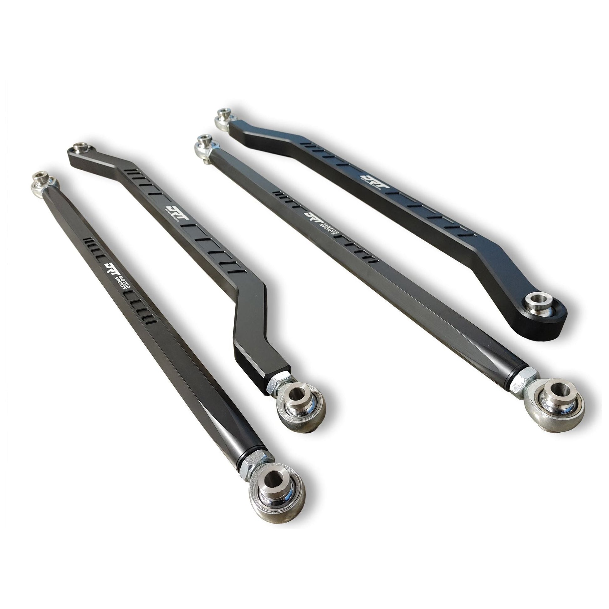 The DRT Motorsports Polaris (2024+) RZR XP 1000/4 (64") High Clearance Radius Rod Kit is designed with performance in mind with reduced weight, significantly increased strength, and total adjustability when compared to your factory non-adjustable radius rod set. These rods are manufactured in the USA on state-of-the-art CNC equipment of aerospace grade aluminum. The upper rods are fully adjustable with left / right hand rod ends at each end for quick camber/adjustability. Lower billet high clearance rods feature press fit Teflon lined wide spherical bearings for maximum load resistance, and use spiral locks to ensure the remain in place.