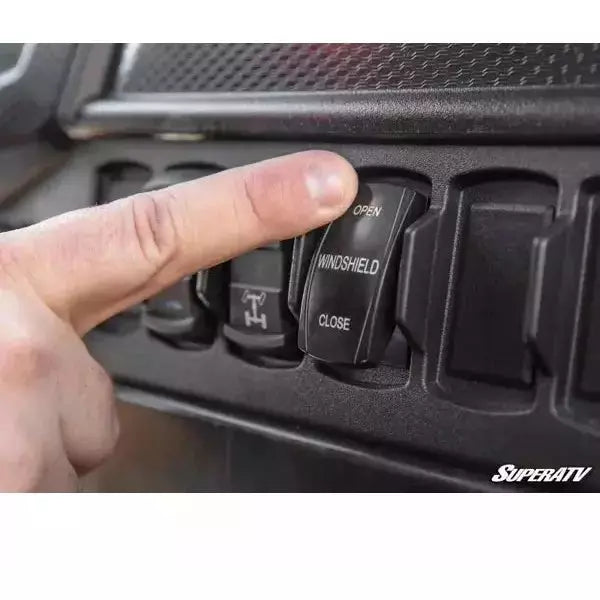 Sometimes the weather turns south when you’re just trying to wheel in your Polaris RZR XP Turbo. Don’t stop the ride! With SuperATV’s MaxDrive Power Flip Windshield, you can close, open, or set it to any position in between without slowing down. All it takes is the push of a button. It’s easy, it’s practical, and you’ll be comfortable no matter what.