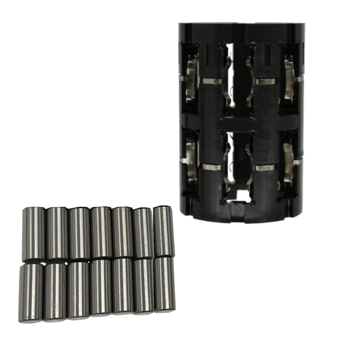 Updated sprague as of November, 2023. This Sprague Cage is made of hardened aluminum and is an upgrade to the OEM plastic cage. This kit comes just as pictured with the Cage, Rollers, H-Clips and easy-install sleeve. This kit has 14 rollers. This kit comes with a 1 year no fault warranty.