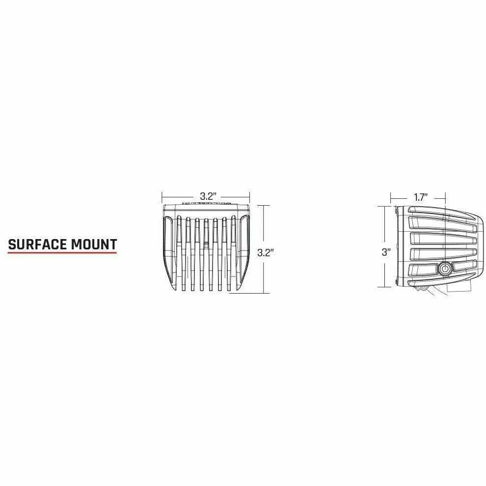 The Radiance Pod is built with a rugged aluminum alloy housing to protect the three powerful LEDs inside, while a black exposed printed circuit board is visible through the durable polycarbonate lens for a unique industrial look. The Radiance Pod is sold in pairs and includes mounting brackets suitable for attachment to any flat surface. Wiring harness sold separately, Own The Night with RIGIDs Radiance family of LED lighting.