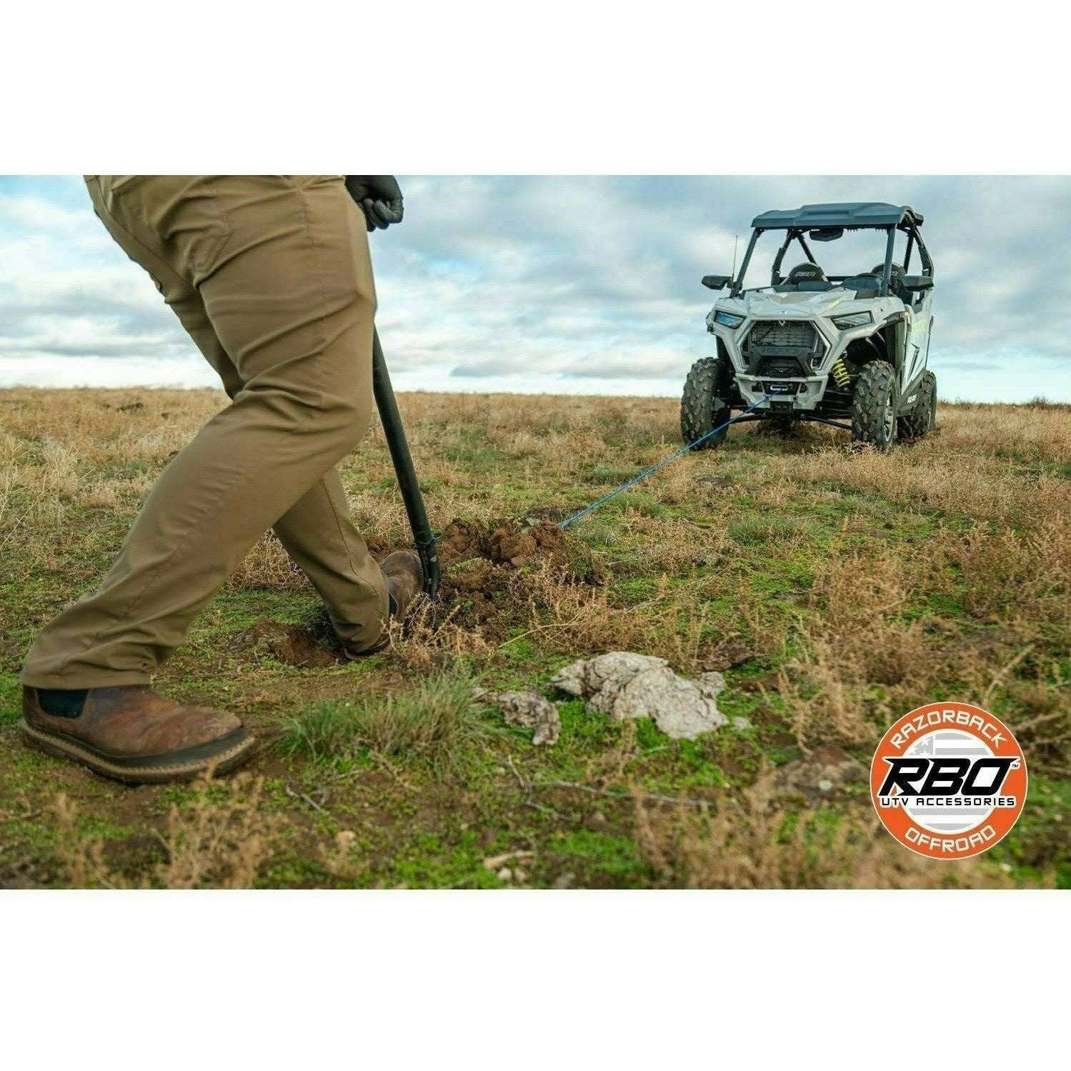 The Razorback Offroad Recovery Shovel is the ultimate adventure multi-tool. Unlike anything else, this shovel was designed to help provide an anchor point when nature does not provide anything to attach your winch to. We designed this Offroad Shovel to self-bury itself and anchor itself into the ground while being winched against. This feature allows the Recovery Shovel to generate the maximum amount of anchoring resistance to help you out of a tough spot. Sometime referred to as a Land Anchor, the Razorback Offroad Recovery Shovel is loaded with features. The neck of the shovel was computer designed to not only reinforce the handle but to give a solid anchor point to attach your winch line too using the supplied shackle.