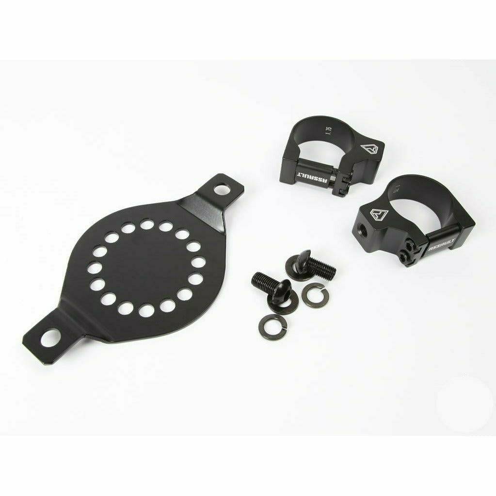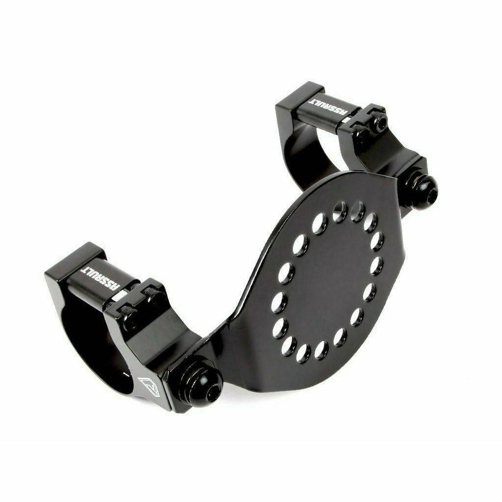 The bracket is made from high grade steel and powder coated satin black. Hole placement makes it possible to mount the container in a way that works best for your set up. The kit comes ready to install with Assault Industries M10 clamps and bolts and washers.
