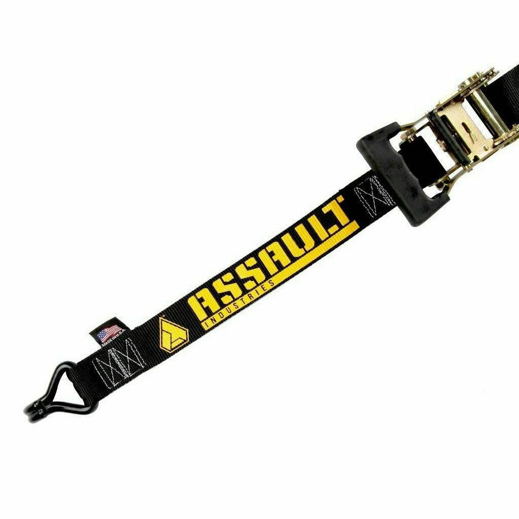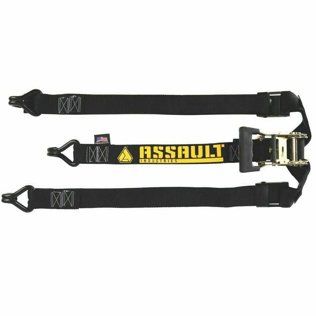 This 2in strapping system is capable of holding much more load than just a spare tire, so you can have confidence that it will perform above and beyond expectations! The straps come only in black with white stitching. An Assault Industries logo is screen printed on the tail strap with high quality yellow ink. The full kit is proudly made in the USA.