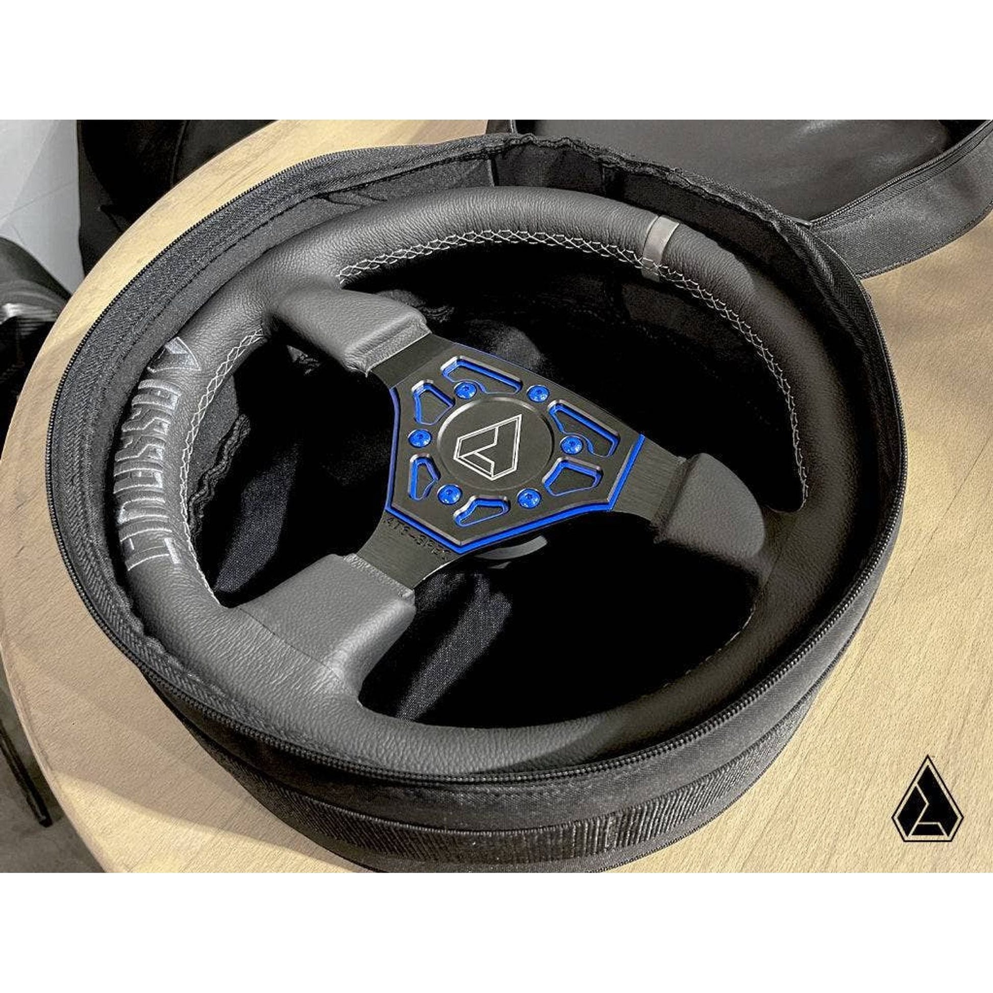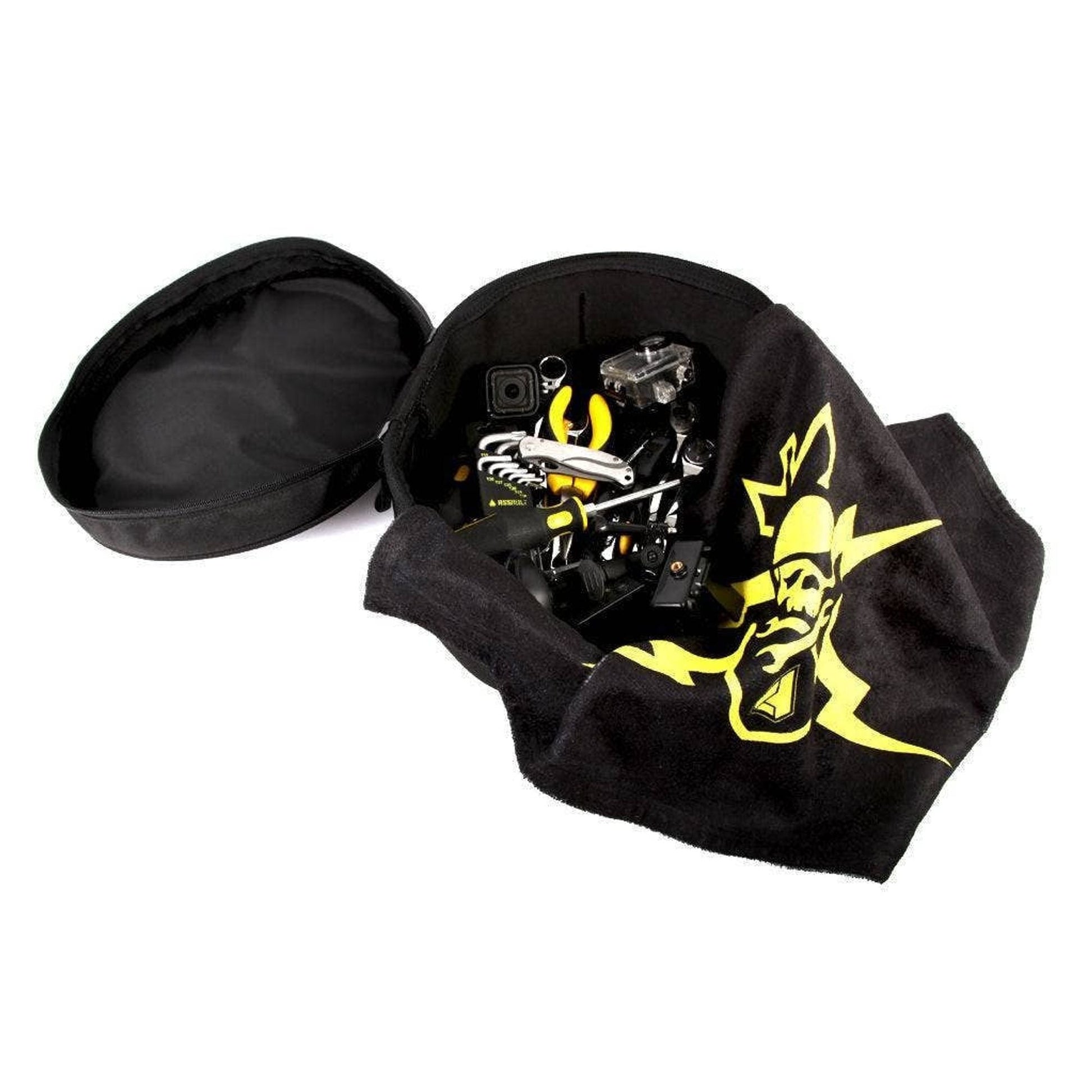 The Wheel Storage Bag is made from durable high quality materials, with dual zippers, padded interior and grab handle for quick and easy removal. The bag also features a woven nylon strapping around the perimeter which can by used to anchor with velcro fasteners (not supplied). It is finished with a large PVC logo patch and compresses flat when not in use.