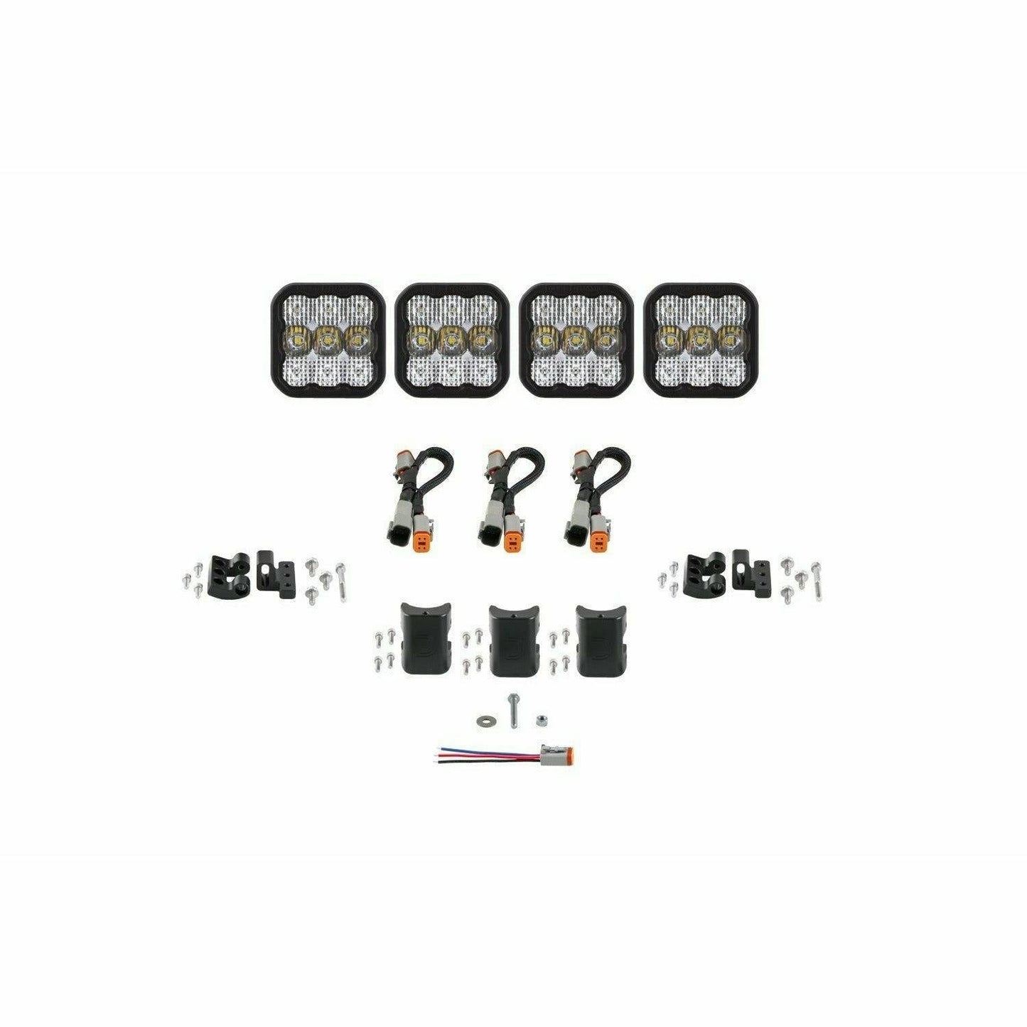 Simple connections. All SS5 LED pods feature a custom-molded DT type Deutsch-style connector on the back. DT splitters are included in the kit to connect the pods together, along with a 6-inch pigtail with bare leads. For installation, you can wire yourself, use an off-the-shelf Deutsch DT sized wire harness, or select the optional Diode Dynamics wire harness.