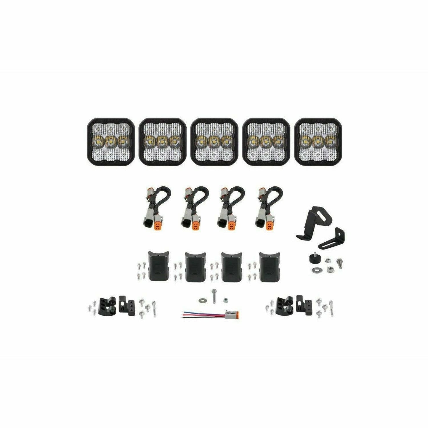 Simple connections. All SS5 LED pods feature a custom-molded DT type Deutsch-style connector on the back. DT splitters are included in the kit to connect the pods together, along with a 6-inch pigtail with bare leads. For installation, you can wire yourself, use an off-the-shelf Deutsch DT sized wire harness, or select the optional Diode Dynamics wire harness.