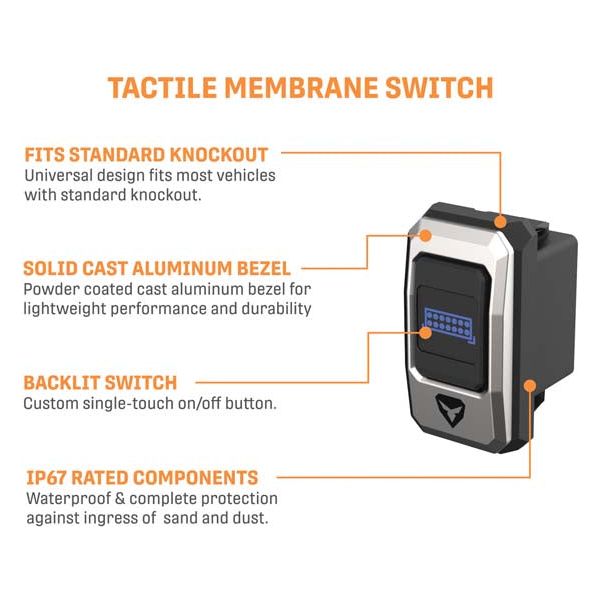 - Backlit Tactile Membrane Switch — Universal design fits most vehicles with standard knockout.