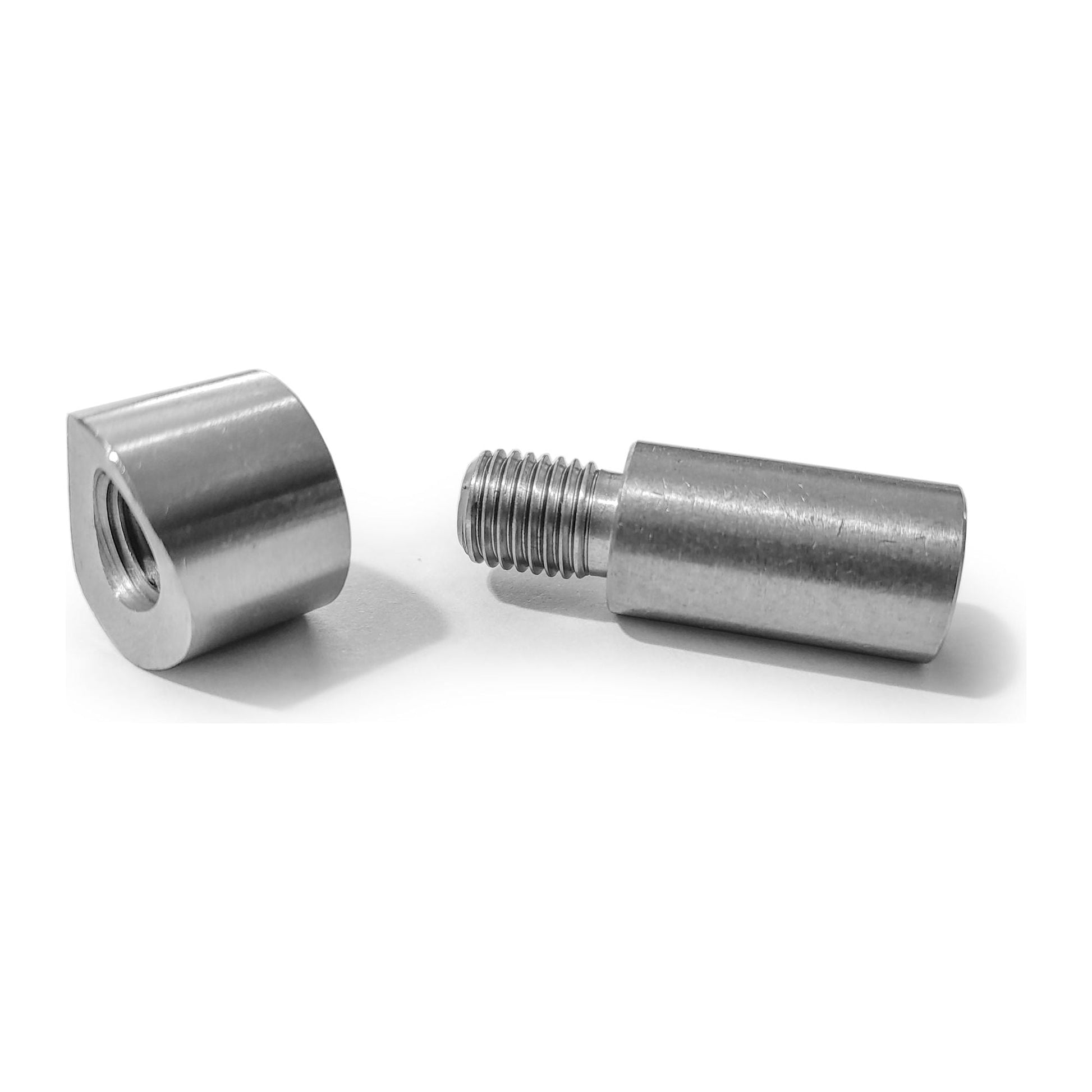 The DRT weld bung is designed for next level of customization when fabrication is involved. The bung is machined to M10 with a 1.25 pitch and 12mm from the center and will add overall length of 15mm. Bungs are coped to 1.75î diameter tube, but will easily weld in and fill to other tube dimensions.