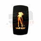 High quality single pole, single throw ON/OFF rocker switch, a 20 amp switch for 12 or 24 volt system. LED Backlit Illumination with a custom etched design, guaranteed to put smile on your face. Waterproof casing makes it perfect for use in wet, sandy or dirty locations. Based on the industry standard carling contura II design, with rear facing spade terminals for easy wiring. We have tons of other great designs in stock, including more matching sexy girl backlit switches.