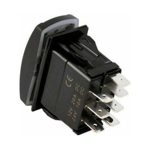 20 Amp 12 Volt (ON)-OFF-(ON) MOMENTARY Rocker Switch. All symbols are laser etched directly onto the switch face to ensure long image life.