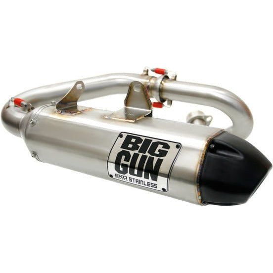 EXO Stainless is the most durable exhaust in our lineup. Constructed of high-strength 304 stainless steel from front to back, EXO Stainless is sure to withstand even the most brutal of riding conditions and use. We took the original EXO Series and swapped out the aluminum muffler for a stainless muffler, replaced the aluminum base plate with a TIG-welded stainless steel plate and added a trick looking stamped stainless badge to top it off.