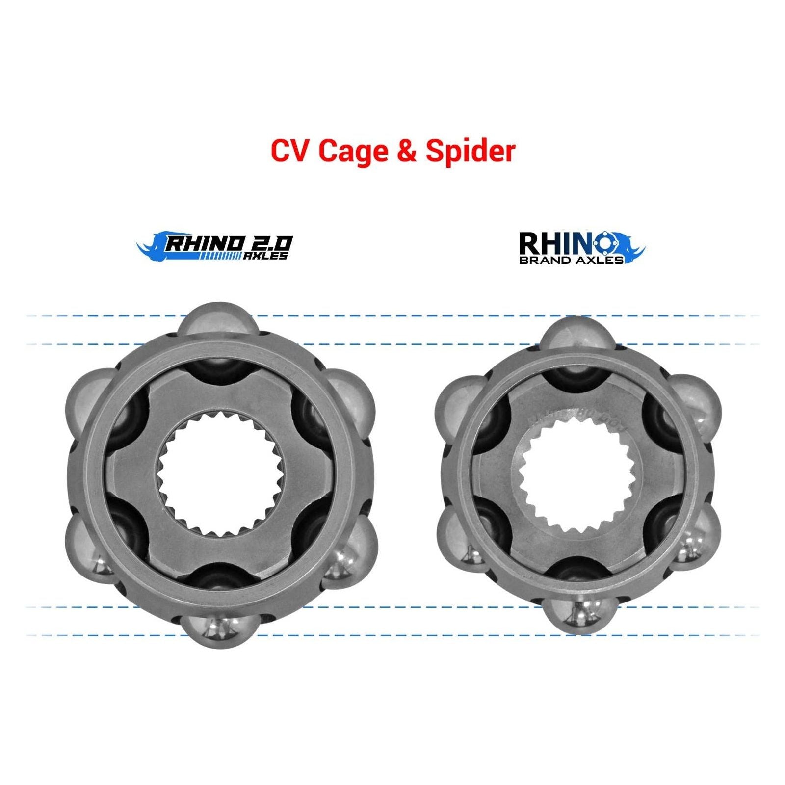 Rhino 2.0 Axles have three key features that make them the best around. First, we use end-to-end chromoly construction for increased strength throughout. Then, we make our shafts bigger so they can absorb more torque. Finally, we’ve maximized our CV joints to give them higher articulation angles that reduce friction and make them run cooler. That’s what you get from our unbeatable Rhino 2.0 formula: