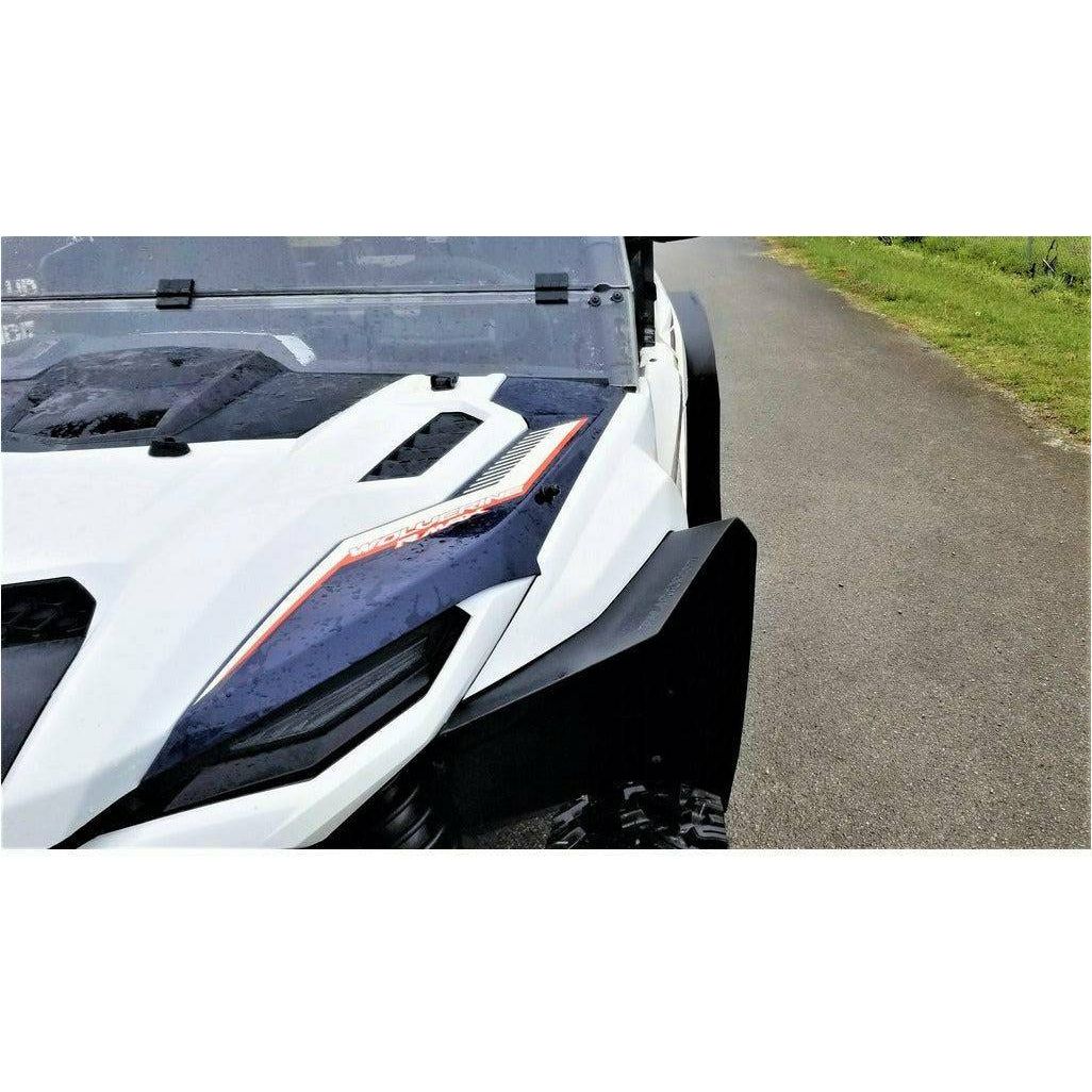 Extends the factory fender of the 2021 - 2022 Yamaha Wolverine RMAX 2 to protect you from mud splash. Greater coverage in the rear than other mud flaps on the market. See also fits chart in gallery for more specific model info. Made of HDPE plastic (textured on face side) custom cut to work with the front and rear Wolverine RMAX 2 1000 fenders. Will extend the width of the vehicle 4 inches each side. Mounting hardware and instructions included.